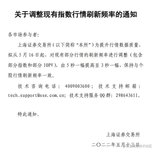 上海证券交易所关于调整现有指数行情刷新频率的通知
