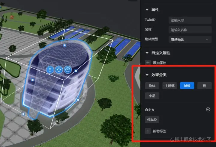 传统的3D场景效果往往只能随着复杂的3D建模工作进行,并且每制作一个3D场景,效果也需要重新制作一份,效果制作门槛儿高、操作繁琐且不可复用。使用森园区搭建完园区场景,一键套用官方效果模板,并支持自定义效果模板,复用更方便!