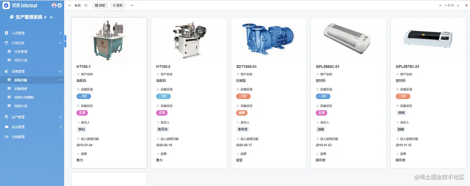 有需要的还可以前往织信Informat官网免费体验,除了MES系统外,人事管理系统、进销存系统、生产管理系统、项目管理系统、CRM系统等众多系统都是可以通过织信Informat低代码平台完成,管理者们可以根据经营情况进行自定义搭建,无论制造业还是其他行业都能搭出最适合自己企业的系统。