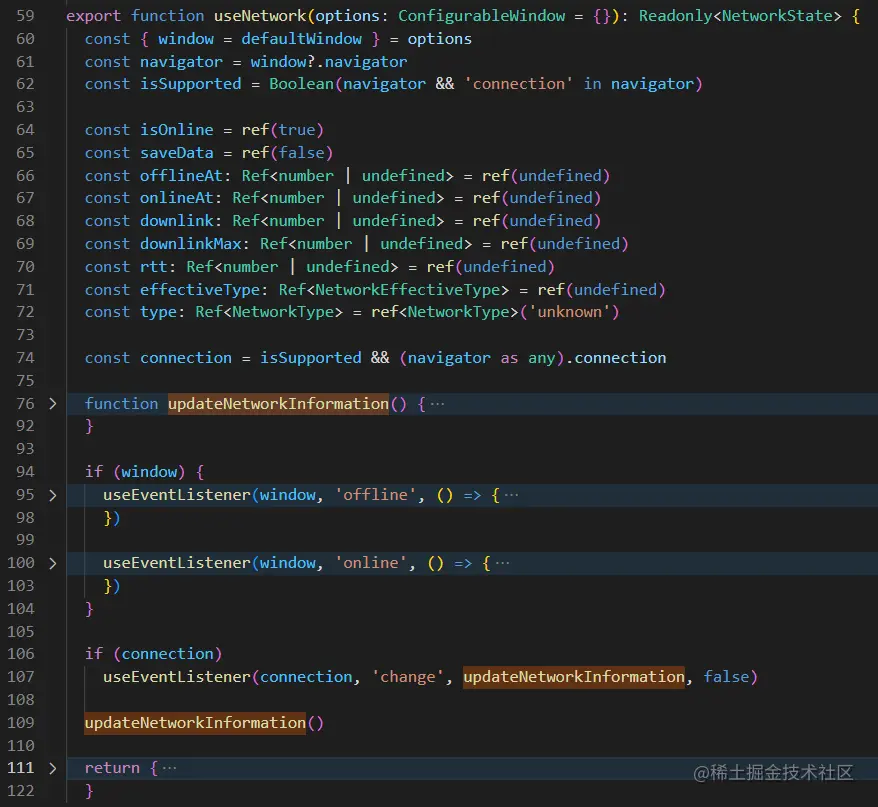 需要注意的是在调用useNetwork的时候就调用了一次updateNetworkInformation方法。