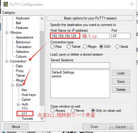 然后按照下面的方式设置putty连接:
