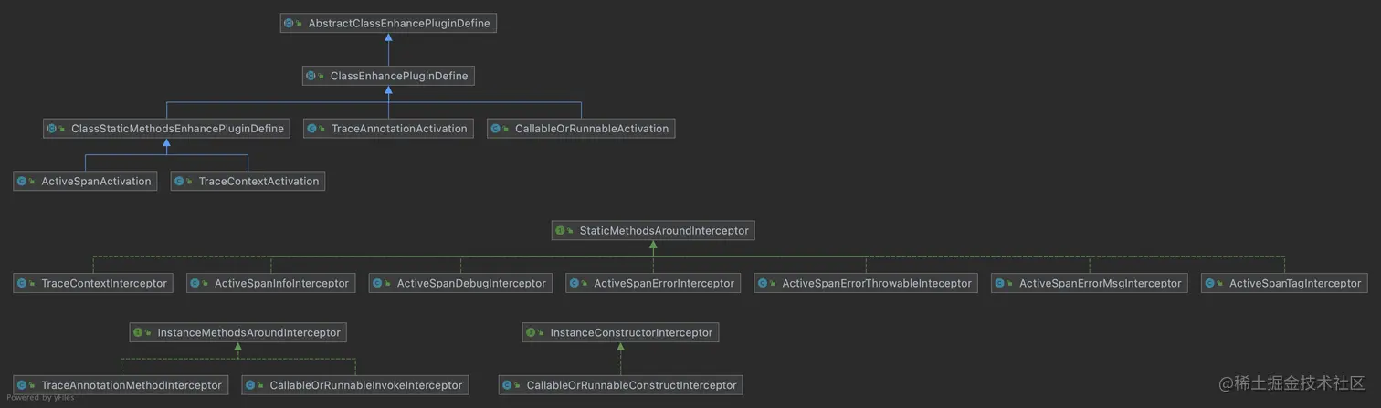 TraceAnnotationActivation实例方法切入点定义拦截标记Trace注解的方法,对应拦截器为TraceAnnotationMethodInterceptor拦截器