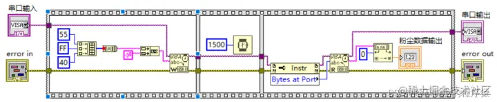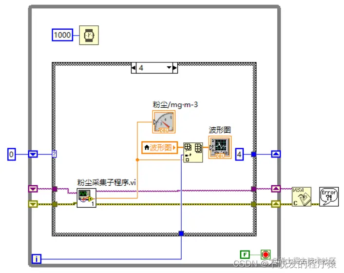 粉尘浓度采集子程序的前面板和程序框图,如下图所示: