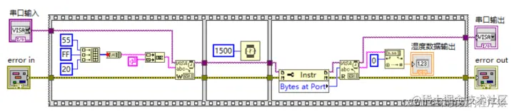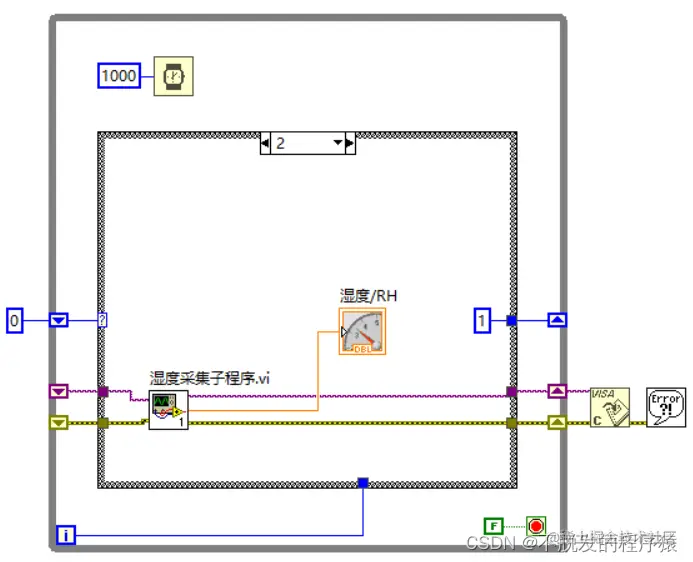湿度采集子程序的前面板和程序框图,如下图所示: