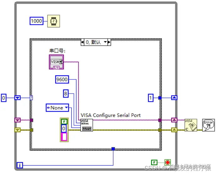 采用条件结构+移位寄存器的状态机来实现LabVIEW上位机主程序,将主程序划分为5个状态:0状态为串口初始化,1状态为温度测量,2状态为湿度测量,3状态为气压测量,4状态为粉尘浓度测量,且初始状态为0状态(串口初始化)。