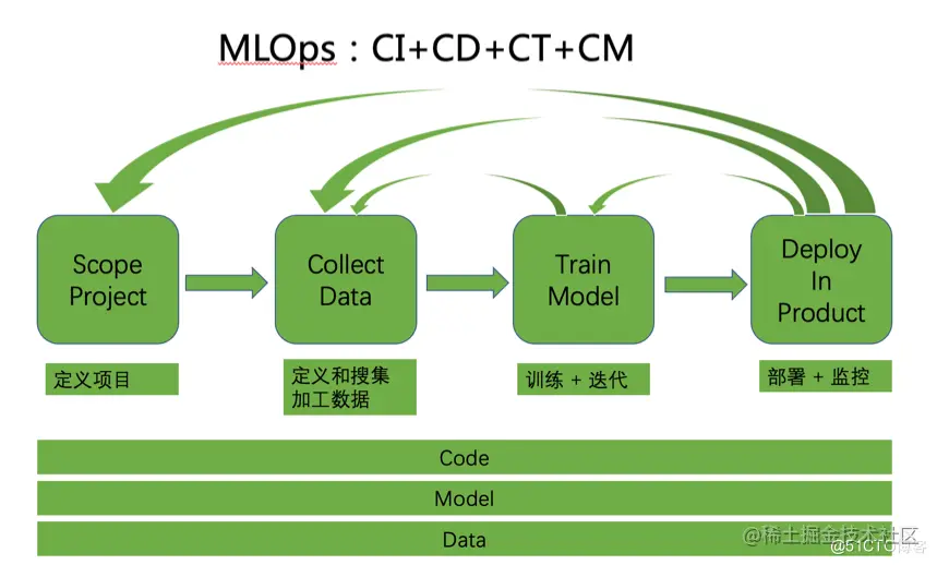 MLOps 是面向机器学习领域,为了提高机器学习落地效率而出现的概念。其中涉及角色包括数据科学家和软件工程师。任务包括定义场景、数据收集和整理、模型训练和部署、持续监控和更新,包括 Pipeline 的四个部分,在整个生命周期中的每一环节都需要更快的迭代和更快的反馈。