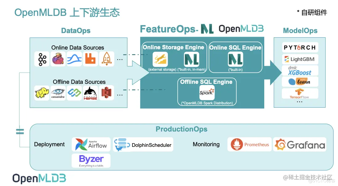 如上图所示,在离线模式下,OpenMLDB 将离线数据导入离线数据库如 S3 或 HDFS ,然后用 OpenMLDB 离线执行引擎做离线特征计算,之后进行模型训练,得到特征结果后,将SQL做 Deploy 。在线部分将数据导入在线数据库,用 Deploy 的 SQL 做在线特征计算。最后把在线特征返回给模型,做模型的 inference 。只需在线下 做 SQL 特征脚本开发、Deploy SQL脚本以及接入实时请求数据流三步骤即可实现开发即上线的要求。目前整个 OpenMLDB 上下游支持了如下图所示的越来越多的工具。OpenMLDB v0.5.2:性能、成本、易用性增强