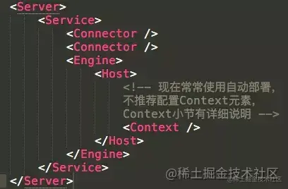 说明:由于server.xml文件中元素与Tomcat中组件的对应关系,后文中为了描述方便,“元素”和“组件”的使用不严格区分。