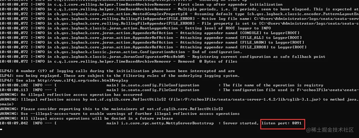 如果我们看到8091端口在监听,并且在nacos看到服务注册上去了,就表示我们seata启动成功了