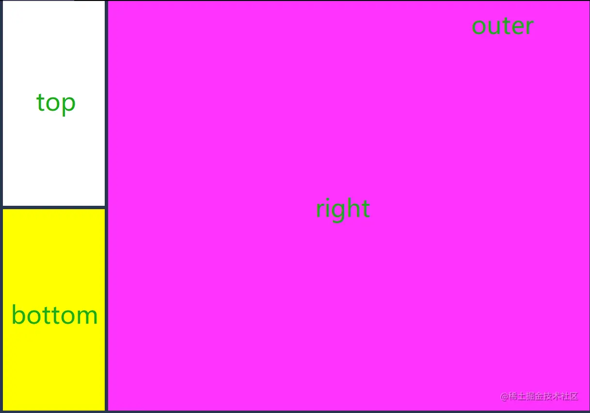 css 布局如下,一整个分成左右两个部分, 然后左边的部分再分上下两部分 ,全部使用 flex 做自适应。