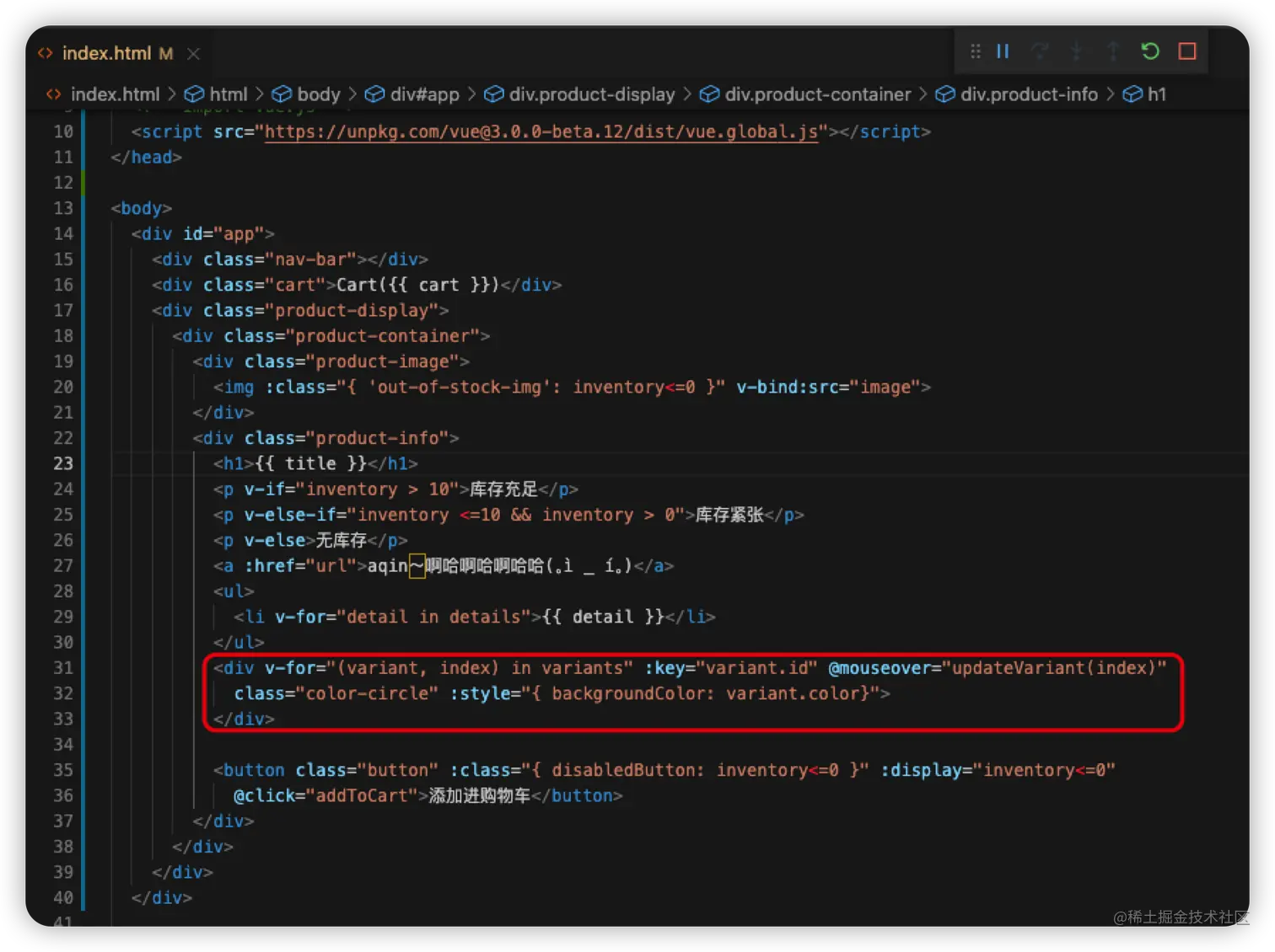 <div v-for="(variant, index) in variants" :key="variant.id" @mouseover="updateVariant(index)"