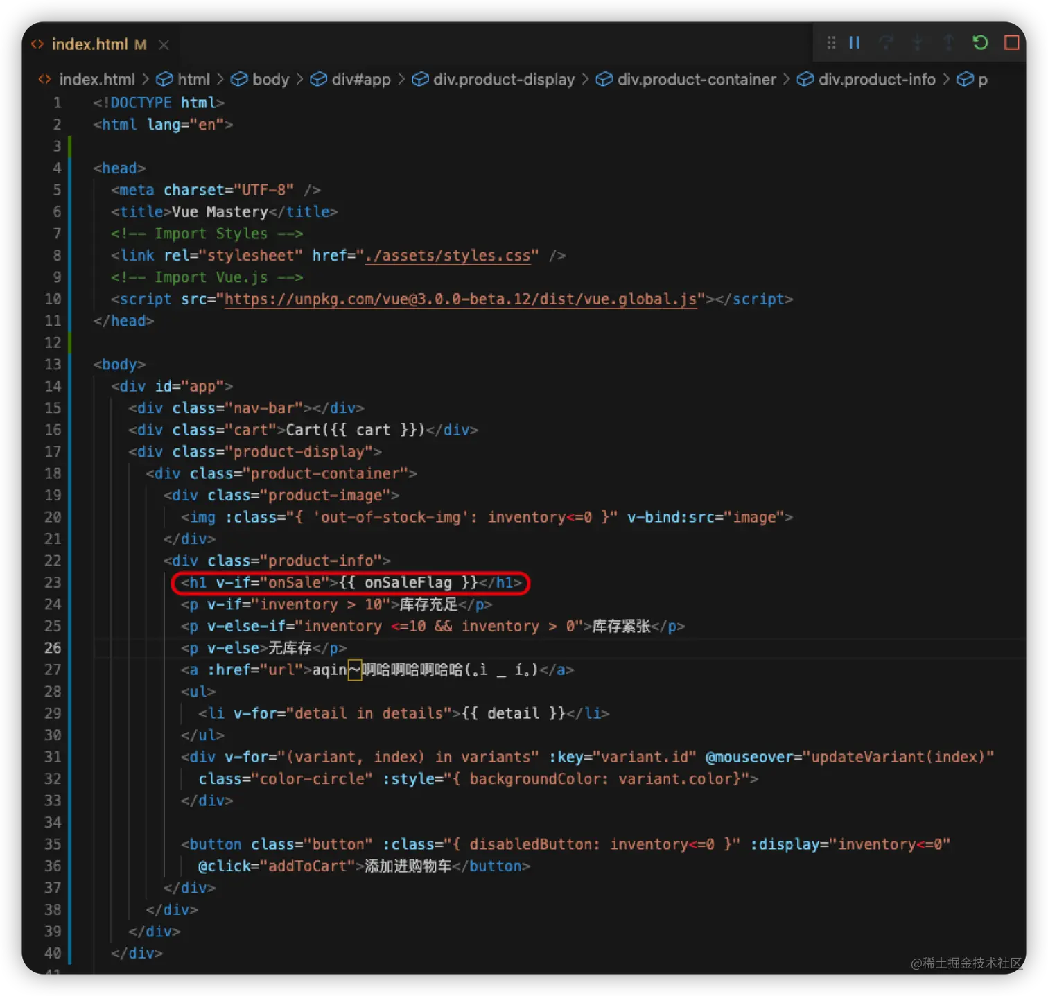 <h1 v-if="onSale">{{ onSaleFlag }}</h1>