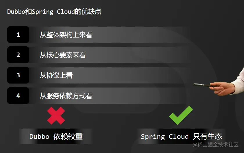 关于Dubbo和Spring Cloud的优缺点,我以奈菲(Netflix)版本为例,从以下5个方面来分析: