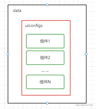 后端或者是本地缓存的数据中,页面相关标识数据并不是重点,所以在这里就忽略了。我们来关注一下组件集合 uiConfigs 。