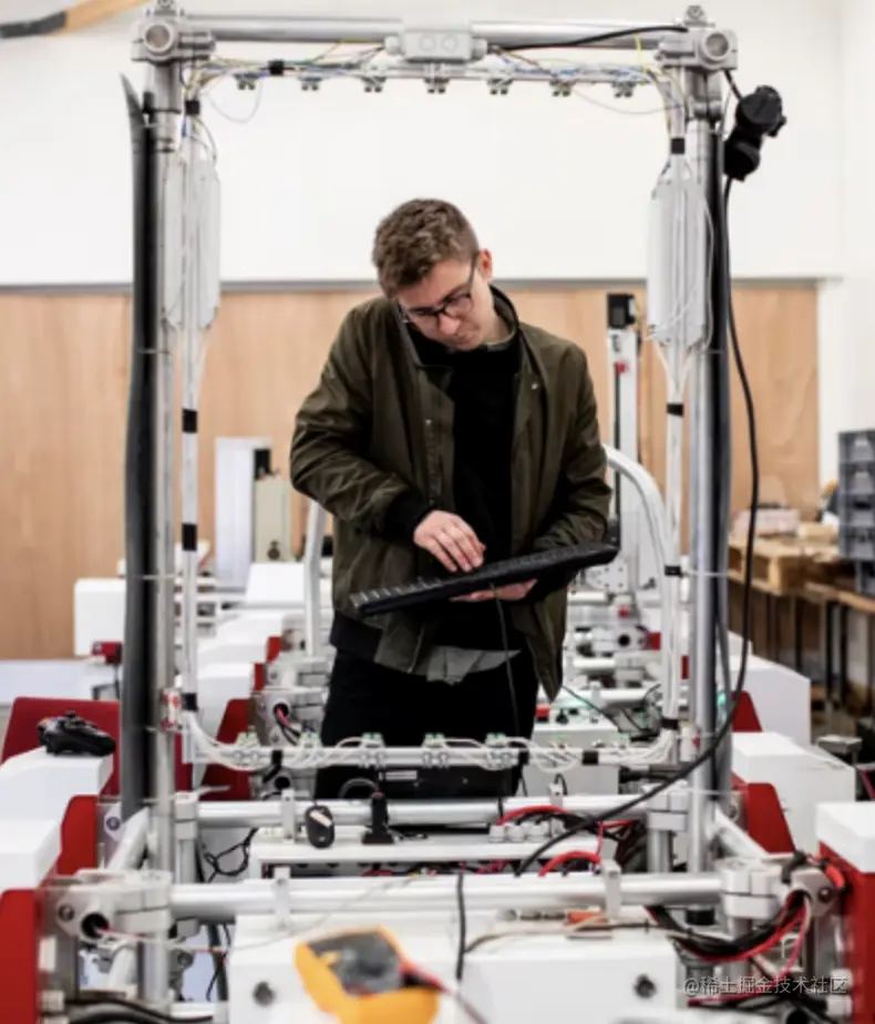 RPA 的应用场景是在线上的。类比线下机器人的场景。如图,在车间里的一位工程师,正在排查机械手臂的问题。