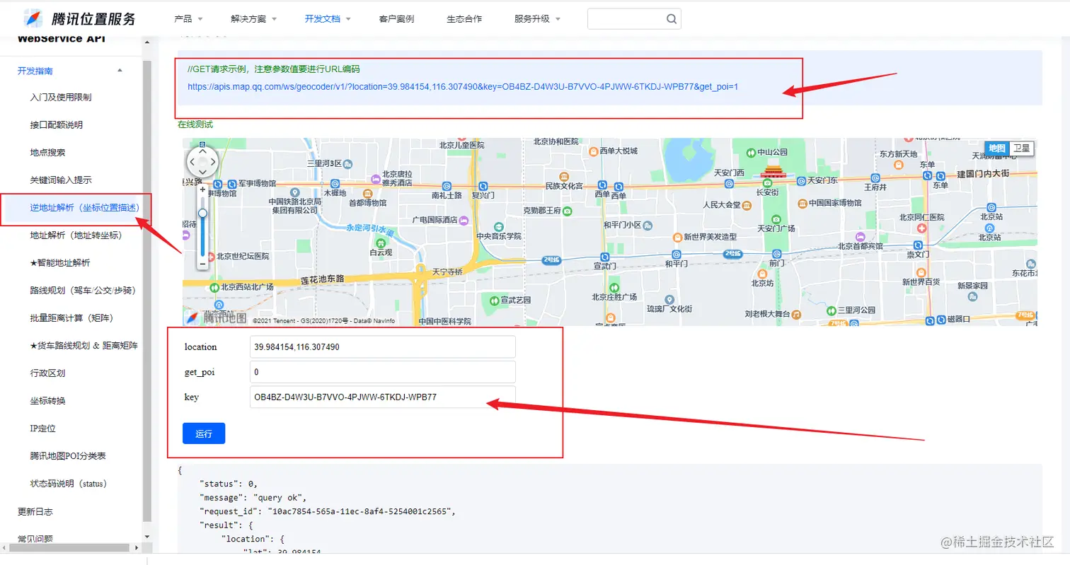 下面开始调用腾讯地图API进行解析我们的经纬度