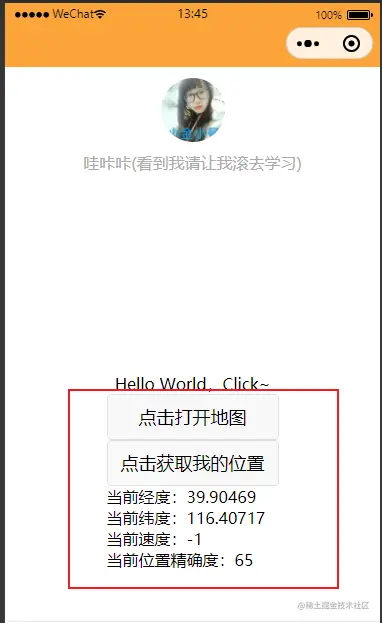 <button type="default" bindtap="openMap1">点击获取我的位置</button>
