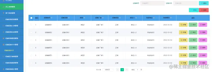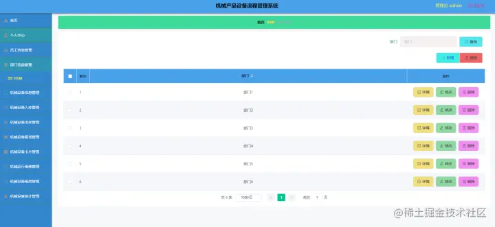 管理员管理功能:首页、个人中心、员工信息管理、部门信息管理、机械设备信息管理、机械设备入库管理、机械设备出库管理、设备租凭管理、设备卡片管理、运行维修管理、设备报废管理、设备统计管理等。