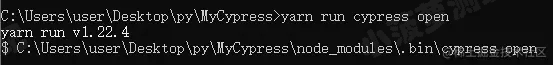C:\Users\user\Desktop\py\MyCypress>yarn run cypress version