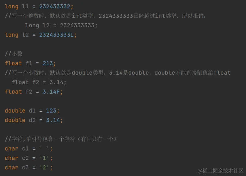 - 数据类型 变量名=变量值;(其中"="为赋值运算符)