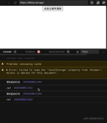注意:效果图中初始化的时候会打印两次重复的第0次渲染,是因为 React 在 dev 模式下会执行两遍组件内容,检测组件是否是纯组件。并非代码问题,后续研读源码时会有文章介绍,欢迎关注。