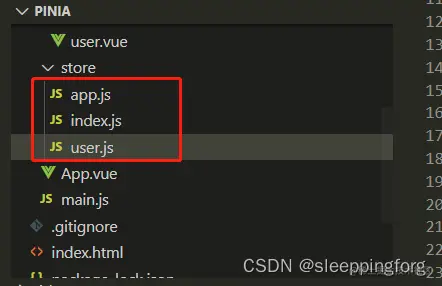 我们在根目录下新建sore文件夹,新建index.js用于创建一个store。和vuex的用法一样我们需要在main.js中作为插件去激活,至此,pinia开始至在全局生效