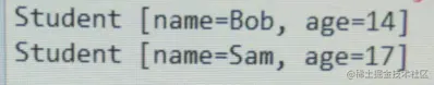 return "Student [name=" + name + ",age=" + age+ "]";