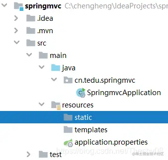 该文件夹是SpringBoot框架默认的静态资源文件夹,项目中的静态资源应该放在这个文件夹之下,例 如 .html 、 .css 、 .js 、图片文件等,例如,在 static 文件夹下创建 index.html :