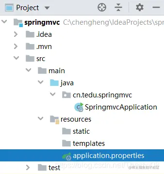在项目的 src/main/resources 下默认就存在 application.properties 文件,这个文件是项目的配 置文件: