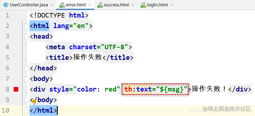 后续,在页面中需要显示数据时,通过Thymeleaf表达式来显示数据即可: