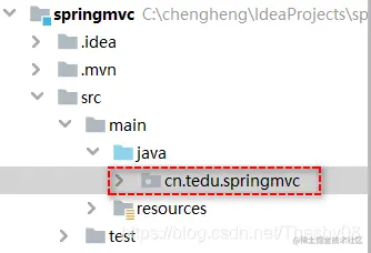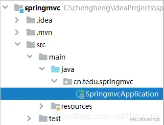 在这个包中,默认已经存在 SpringmvcApplication 类,类的名称是创建项目时指定的Artifact决定 的: