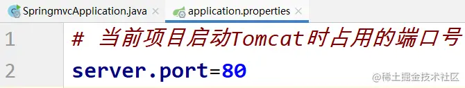 如果需要指定当前项目启动时,将Tomcat启动在哪个端口,可以添加配置: