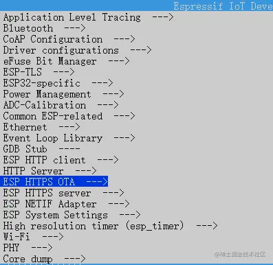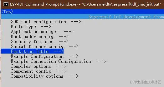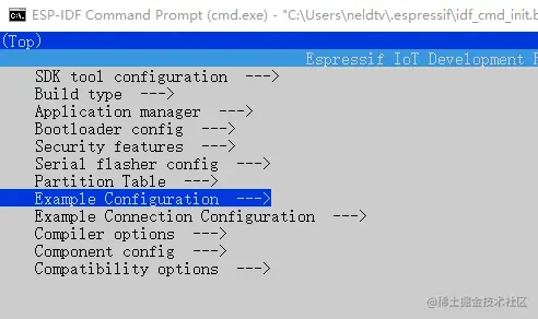 打开项目配置菜单 idf.py menuconfig