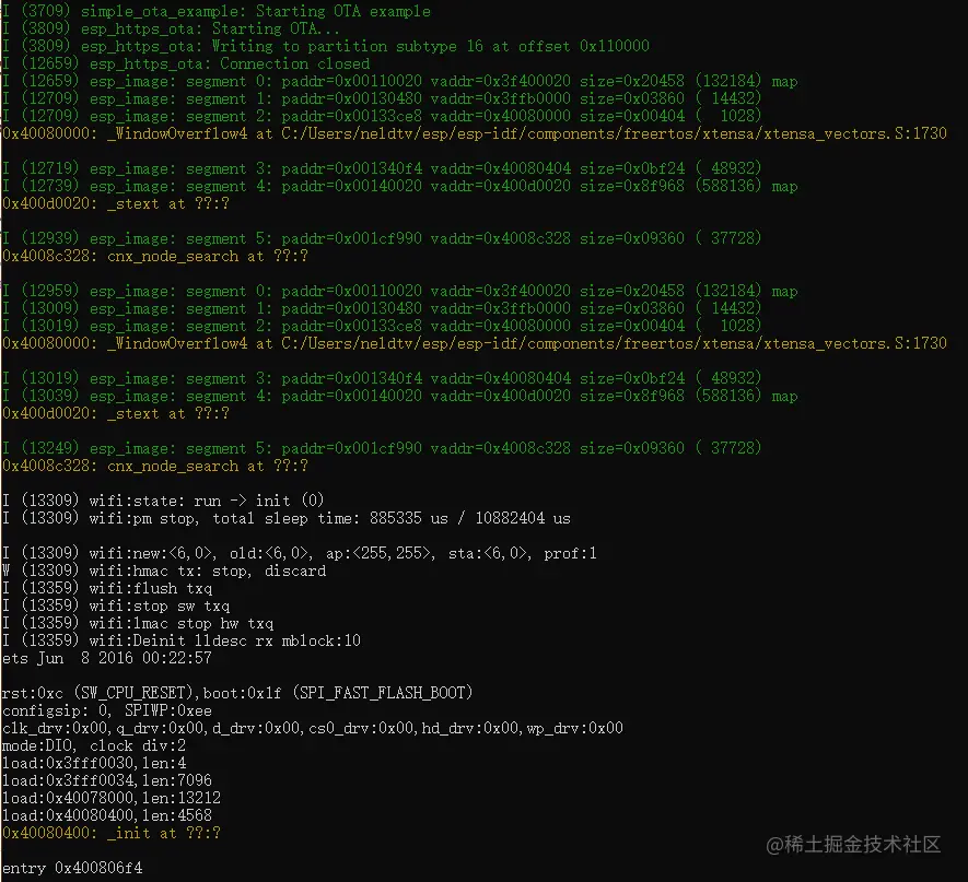 ESP32应用程序可以在运行时通过Wi-Fi或以太网从特定的服务器下载新映像,然后将其闪存到某些分区中,从而进行升级。