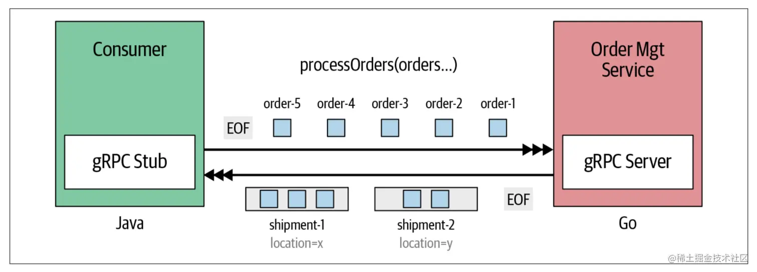 - 双向流RPC(Bidirectional-Streaming RPC):多请求,多应答