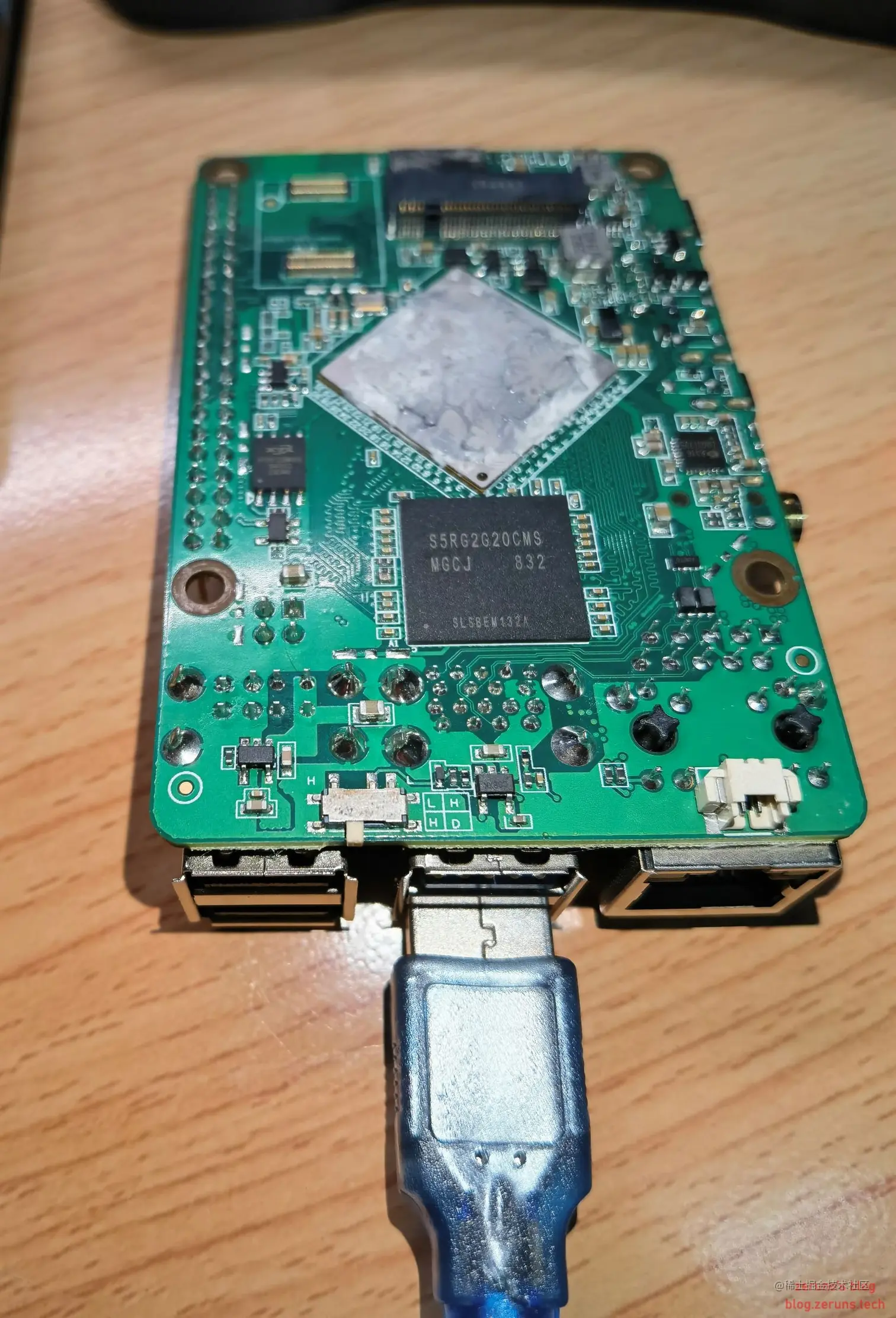 2.将公对公USB线插入ROCK Pi 4 OTG端口(最上面的USB3.0端口),另一端连接PC
