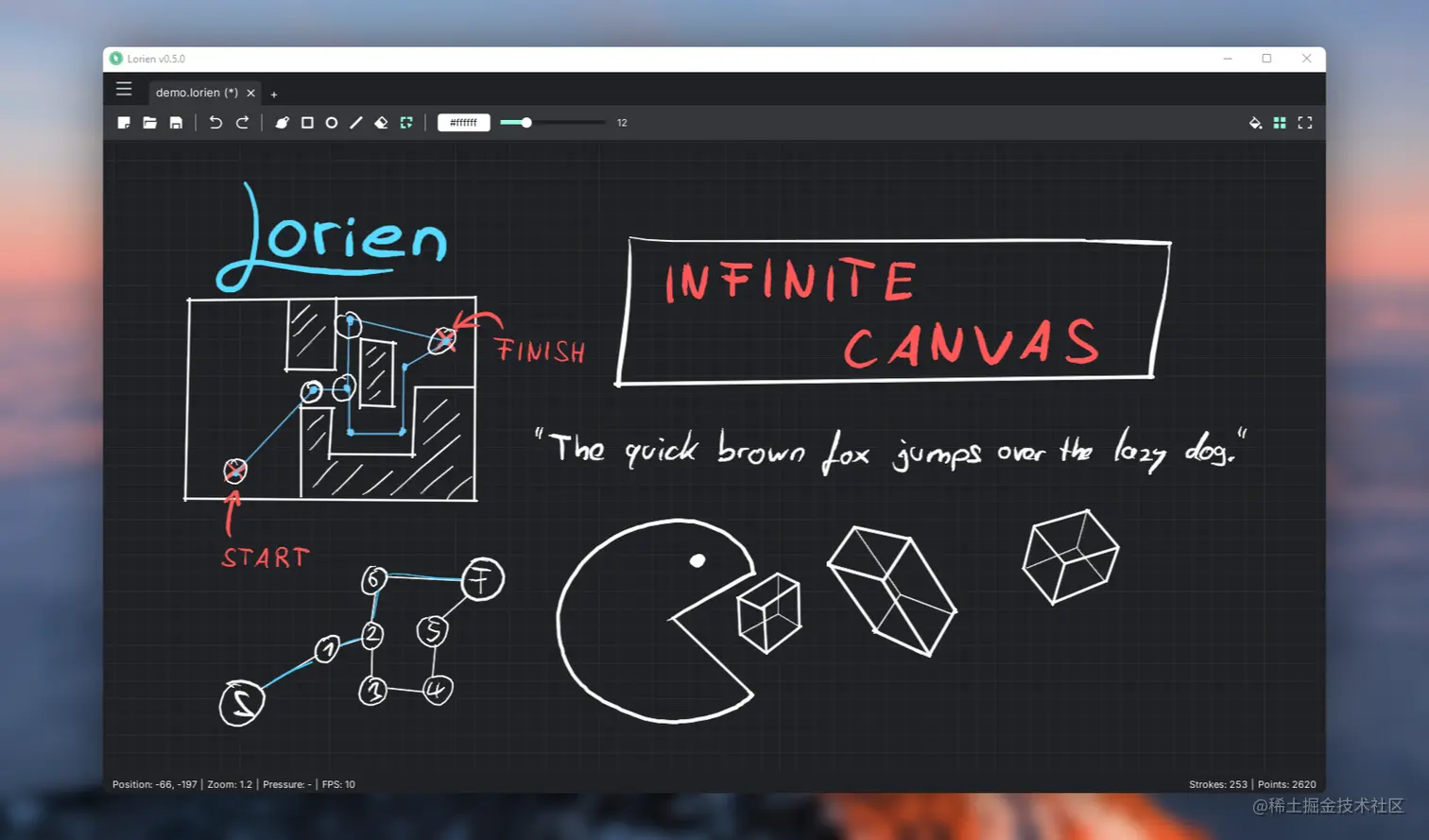 Lorien 基于 Godot 的白板应用,适用于 macOS、Windows 和 Linux。作为一个不限画布大小的绘图和白板应用,你可以用它来记录你的疯狂 idea,脑暴时以此为记录工具,也可以当作工作和学习中的笔记工具,Lorien 有高性能、易用等特性。