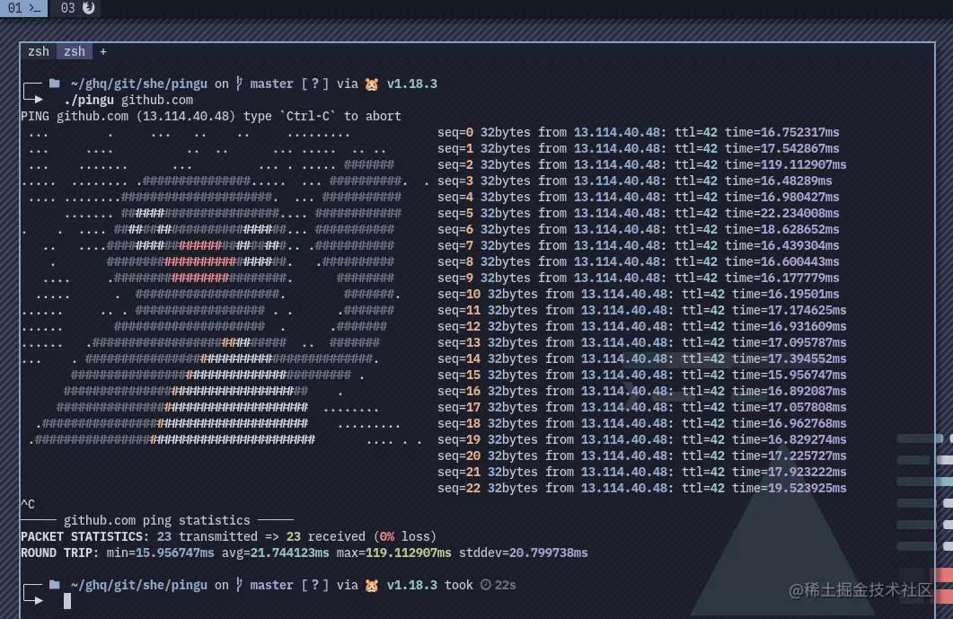 New 我们见过很多终端美化器,今天是一个特定命令的美化工具——pingu,当你尝试在终端 ping 某个服务,例如 GitHub 时,你将会得到一只和你 say hey 的小企鹅。