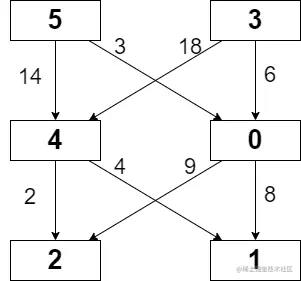 Explanation: The path with the minimum possible cost is the path 5 -> 0 -> 1.