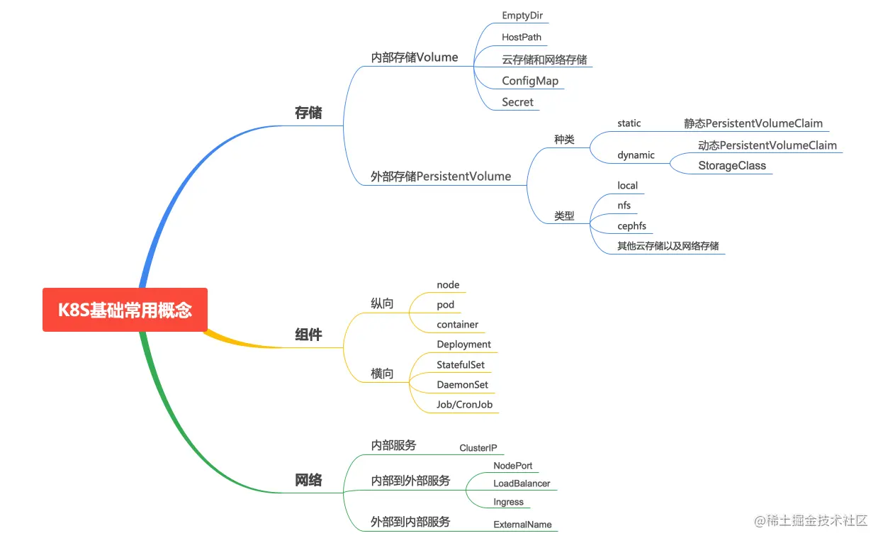 首先声明下上面的图的概念是不完整的,K8S这三方面的内容远不止于此,我所写的只是常用到的以及我用到的一些概念以及组件。由于网上的资料很多,所以这里我就总结一下,把一些使用感受和经验说一说,具体的概念我这里仅简单介绍下,不做详细复制和粘贴,大家感兴趣的可以去自己查,网上很多。这么做的目的就是希望能帮大家快速理解和掌握这些概念,尽快入门K8S。