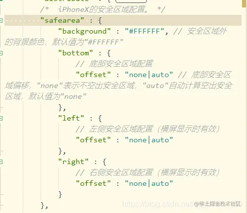 "background" : "#FFFFFF", // 安全区域外的背景颜色,默认值为"#FFFFFF"