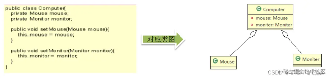 如果我们人Mouse,Monitor和Computer是不可分离的,则升级为组合关系