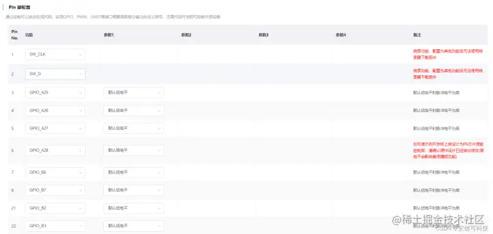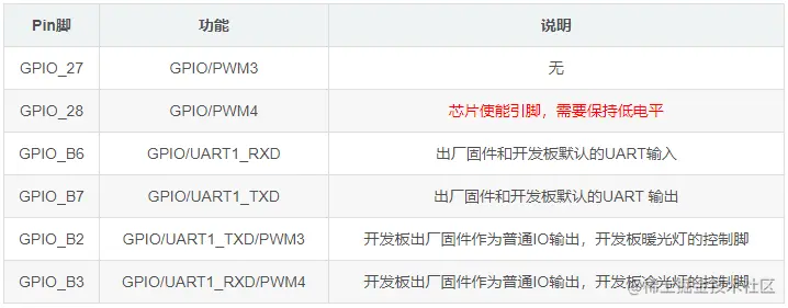 Pin脚配置,这是SDK对这些引脚进行初始化之后,设置的引脚状态: