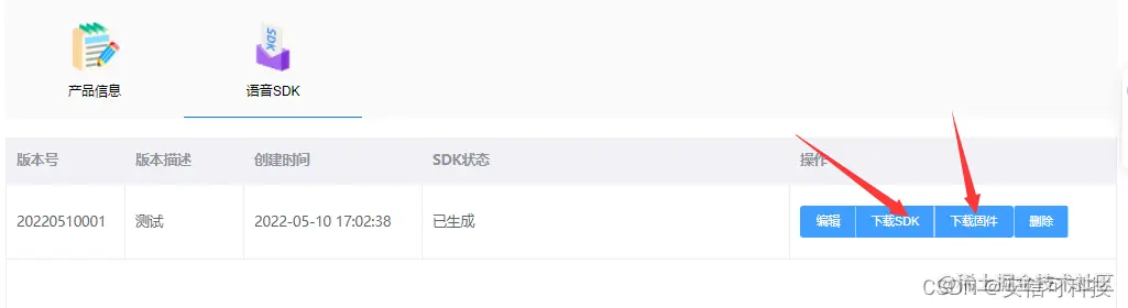 固件生成成功之后,就可以在同一页面下载SDK及固件: