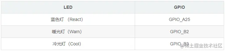 在开发板中,默认引出了三个LED灯,对应的GPIO分别是: