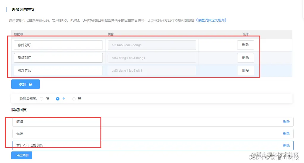 回复语:即命令词对应的回复语,多个回复语用 “ | ”隔开,必填