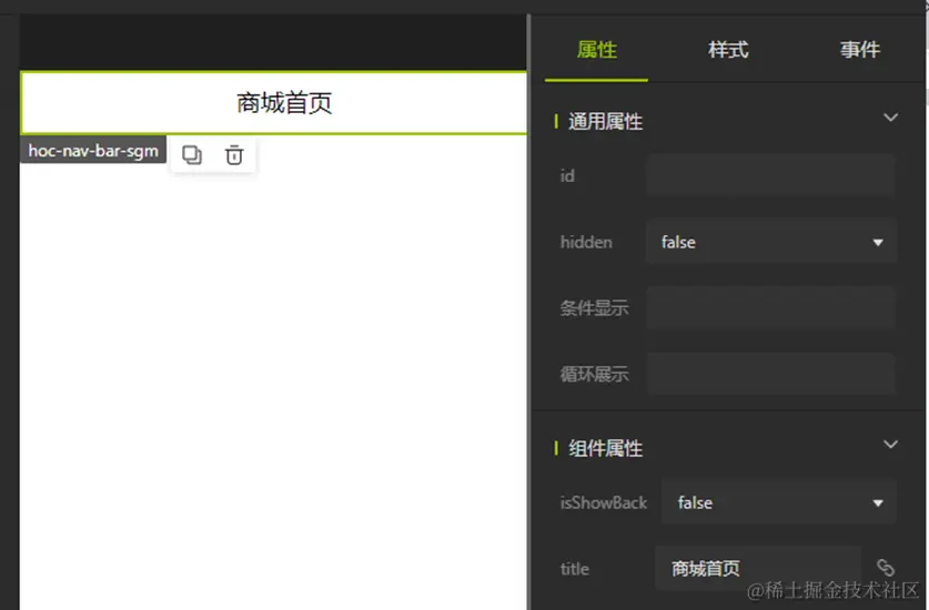 从右侧属性设置栏可以修改导航栏的名字,我们就修改为“商城首页”