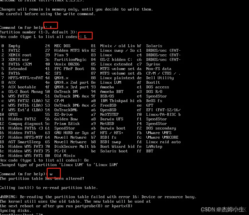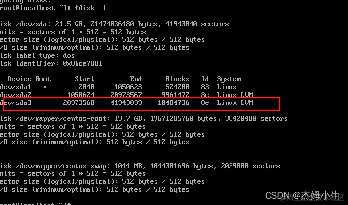 5、 fdisk -l 再查看一下是否改成8e 和Linux LVM