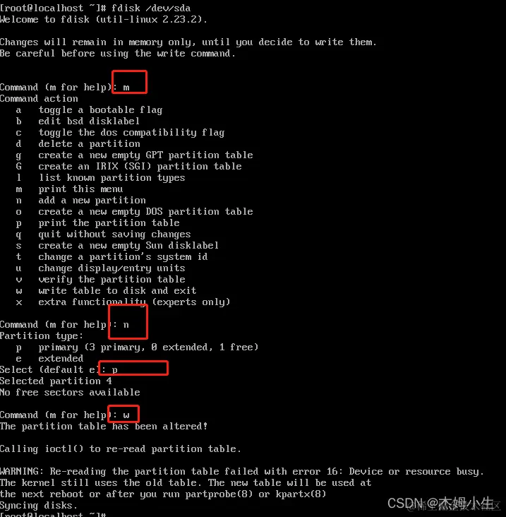 2、对新增加的硬盘进行分区 执行命令:fdisk /dev/sda
