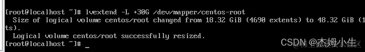 1、执行命令:lvextend -L +10G /dev/mapper/centos-root 进行扩容
